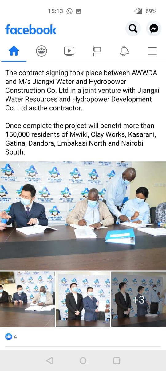 2021年3月19日當地時間上午八時,肯尼亞分公司與肯尼亞阿西水務開發局在阿西水務大廈簽訂了Mwiki污水管道項目施工合同??夏醽喒究偣こ處焺⑷鹆执矸止九c阿西水務局首席執行官麥克共同出席簽約儀式并簽定施工合同。