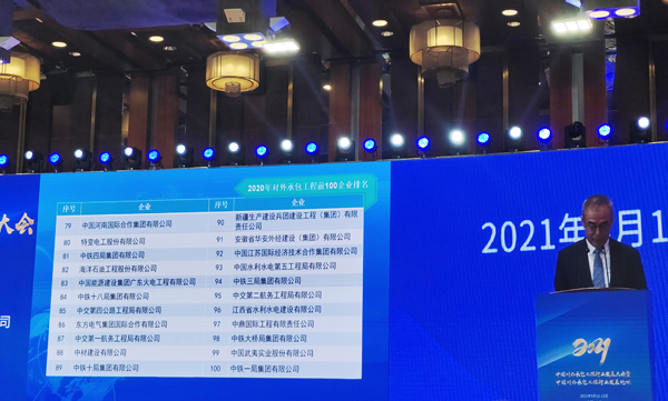 會(huì)議期間,中國(guó)對(duì)外承包工程商會(huì)發(fā)布了2020年度對(duì)外承包工程前100企業(yè),交通、電力、房建三個(gè)主要業(yè)務(wù)領(lǐng)域以及亞洲、非洲、歐洲、拉美四個(gè)市場(chǎng)30強(qiáng)名單。其中,我公司位列2020年度對(duì)外承包工程前100強(qiáng)企業(yè)榜單。此外,公司再次連續(xù)獲評(píng)2021年度對(duì)外承包工程行業(yè)A級(jí)企業(yè)稱號(hào)。