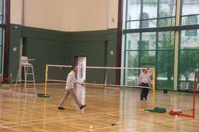 座談會結束后,大家乘車前往恒大體育館,活動的第一項內容是公司領導和青年員工共同完成的團隊拓展游戲——“齊腳并進”和“心心相印”兩項接力比賽。比賽過程中,公司領導和青年員工們熱情高漲,目標明確,心往一處想,勁往一處使,充分發揮團隊協作精神,爭分奪秒完成各項任務,布滿汗水的笑臉在燈光下熠熠生輝,加油鼓勁和歡呼祝賀聲響成一片。拓展游戲項目結束,大家還進行了籃球友誼賽和羽毛球比賽。