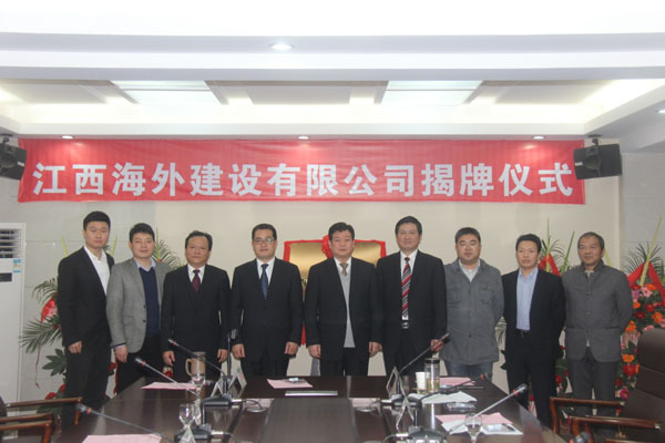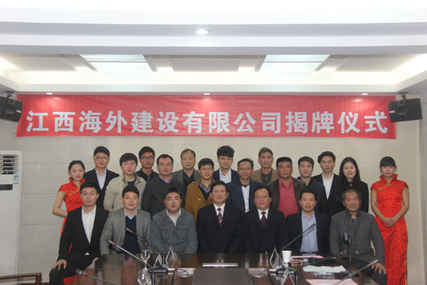 隨后,伴隨著歡樂喜慶的歌曲,總公司董事長王元旦,總經理徐洪良與江西海外建設有限公司執(zhí)行董事張周平,總經理黃鄭民為新公司揭牌并合影留念。
