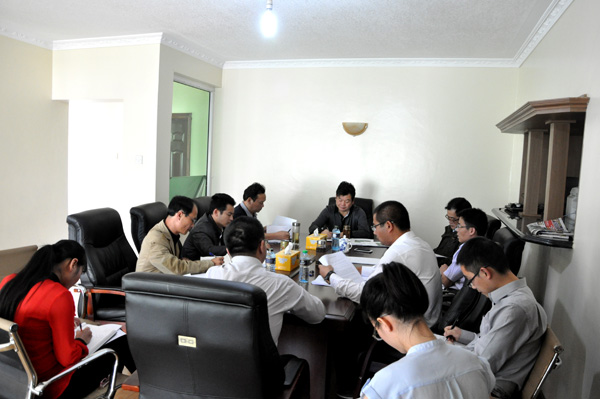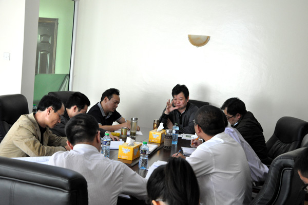 董事長兼總經理王元旦一行抵達我公司駐肯尼亞分公司辦事處后,立即召開了海外工作會議。會上,在肯主要管理人員就市場開發、工程建設等工作情況進行了詳細匯報,副總經理徐洪良、黃鄭民分別進行了發言。王總在會上做了總結講話,他對肯尼亞分公司取得的成績給予了充分肯定,對在肯發展形勢表示了充足的信心。首先,他指出,肯尼亞分公司是一支團結、有戰斗隊的隊伍,要通過不斷學習挖潛,打造一支成學習型團隊。其次,他要求肯尼亞分公司要高標準建好在建工程。通過做好雙河房地產項目展示公司實力,通過水電樞紐項目拓展公司發展方向,為公司海外發展戰略調整提供機會,力爭在2~3年內把肯分公司壯大,做成亮點。最后,他強調要高度重視海外項目稅務工作,他認為這是海外項目最后營利的關鍵,項目管理要與財務相結合,同時要處理好與合作伙伴關系。