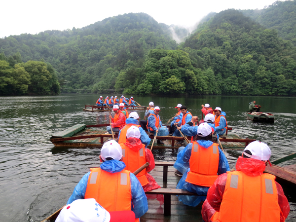 5月4日上午,大家在南昌統(tǒng)一集合,乘車出發(fā)前往龍源峽風(fēng)景區(qū)。天空下起了淅淅瀝瀝的小雨,到達(dá)景區(qū)后,雨勢加大,但并沒有阻擋住江西水建青年員工的熱情,大家經(jīng)破冰和分組環(huán)節(jié)后, 60多人分為八組,進(jìn)入高峽明珠雙燕海劃木板船,在湖心展開了一場別開生面的劃船比賽,激蕩的水花在濛濛細(xì)雨中此起彼伏,頗有“百舸爭流”的壯麗場面。隨后,大家興致勃勃地游覽了三星嶺、千福灘、萬壽山和水中大森林等景點。