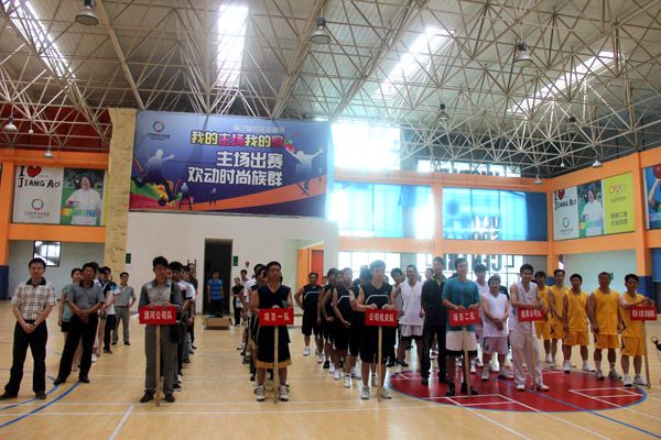 公司黨委書記、董事長總經理王元旦首先作開幕致詞。他在講話中說,為豐富公司員工的文化體育生活,公司在此舉辦員工籃球賽,這次比賽旨在增進公司各單位之間的團結和友誼,為江西水總培育集團型企業凝聚力量、注入新的活力,具有重要的紀念意義。希望參加比賽的各支球隊和隊員頑強拼搏,賽出成績,勇爭第一,同時要堅持友誼第一,比賽第二的原則。作為開展建黨90周年慶?;顒又?,通過本次比賽,共同祝愿偉大的中國共產黨和國家各項建設事業更加繁榮昌盛。黨委副書記王延軍宣布公司籃球賽開始。