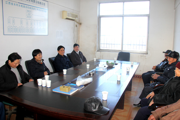 1月15日下午,省水利廳廳長孫曉山率領(lǐng)廳副巡視員周江紅、廳辦公室主任王純、廳人事處處長戴金華和離退休干部處處長張魯江等前往我公司南昌縣職工生活基地,看望慰問離退休老同志。公司董事長兼總經(jīng)理王元旦陪同參加了慰問活動(dòng)。