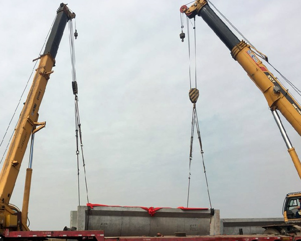 廖坊灌區(qū)二期工程PPP項目為國家“十三五”期間172項重大水利工程之一,也是我公司首個“PPP” 項目;總投資12.9億,其中建安投資7.83億。2018年1月15日上午十時許,在業(yè)主、監(jiān)理等參建單位人員的注視下,伴隨著禮炮的轟鳴,下幕塘渡槽順利完成了首跨槽身的吊裝。首跨渡槽的吊裝為項目的按期完成打下堅實基礎(chǔ),同時也為我司積累了現(xiàn)代化裝配式建筑的施工經(jīng)驗。