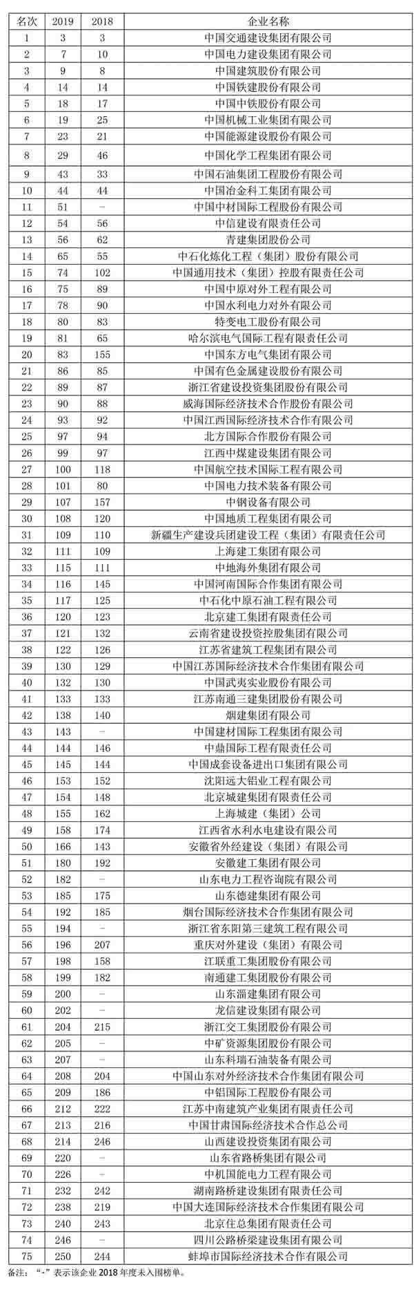 8月22日,2019年度美國(guó)《工程新聞紀(jì)錄(ENR)》“全球250家國(guó)際承包商”榜單揭曉