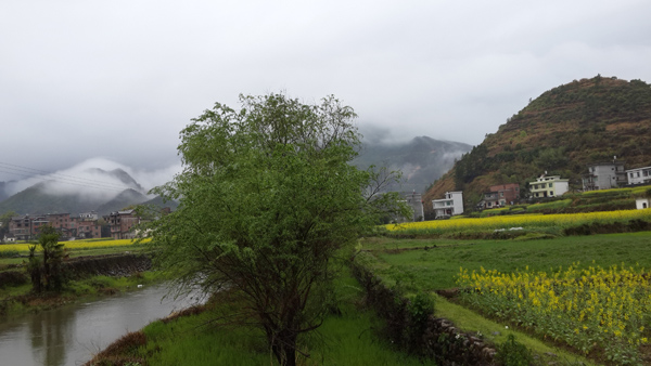 玉山縣樟村鎮防洪工程項目所在地,一眼望去,左邊是革命教育基地懷玉山,右邊是世界地質公園三清山(如上圖)。