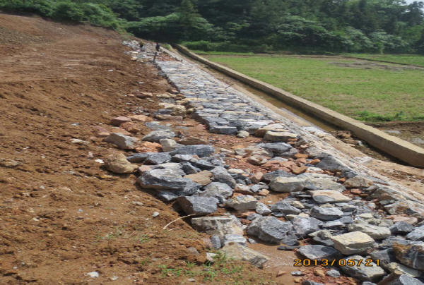 砌石所用石料必須新鮮、堅硬、完整,嚴禁使用風化石、有裂隙石料。對表層風化的石料,無論作腹石、面石,也必須徹底鑿除。
