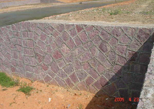 砌石護坡和擋墻面石外露面要求顏色一致,最小厚度應不少于20cm,砌筑時,上下兩層石塊應騎縫,避免通縫,內外石塊應交錯搭接。不得在面石底面無漿墊塞片石。對有勾凸縫(縫寬一般2.5cm)要求的面石,其砌縫縫寬不應大于2.0cm。